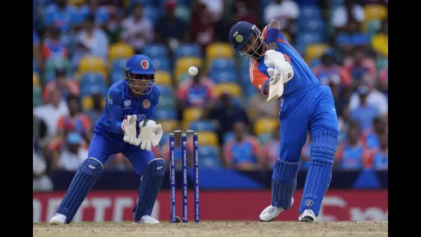 Hardik Pandya slammed a huge six on the ball of Noor Ahmad in the IND vs AFG Super 8 match of the ICC T20 World Cup 2024. On the fifth delivery of the 16th over, Pandya came down the ground to hit the Afghan spinner and the delivery almost landed in the commentary box at the Malcolm Marshall end.
