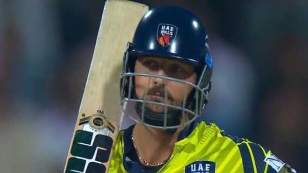 The UAE Bulls team had a very bad start. James Vince retired after playing only two balls. Phil Salt started fast but this player was out after scoring 18 runs in 8 balls. after this tim david Came to the crease and it seemed as if this player wreaked havoc. Tim David remained silent for the first 13 balls, but after that he hit four consecutive sixes in Johar Iqbal's over. David hit 3 more sixes in the 9th over.