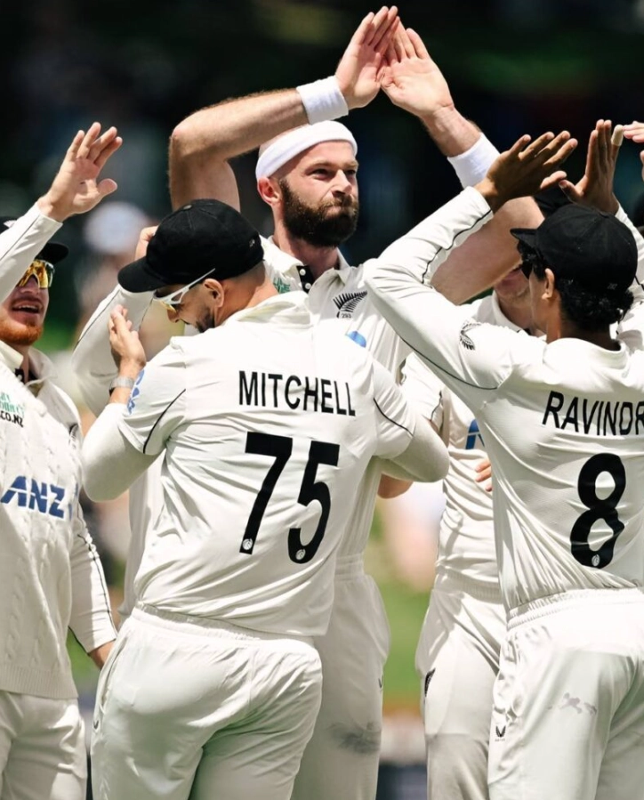 Yet to bat: Kane Williamson, Rachin Ravindra, Daryl Mitchell, +Mitchell Hay, Glenn Phillips, Zak Foulkes, Blair Tickner, Jacob Duff, Michael Rae.