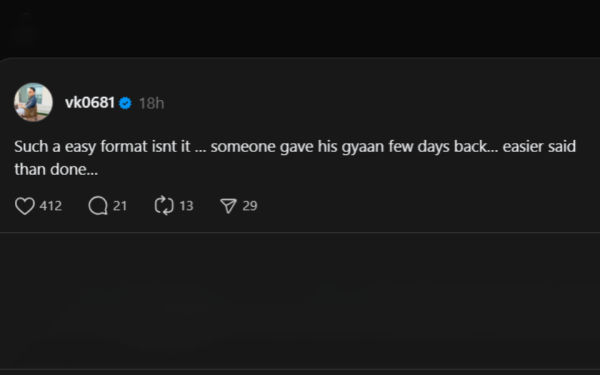 Check Virat Kohli's brother's post here:"A lot of people have asked me why I keep saying ODI cricket is easy for top-order batters. Go back a few years in Indian cricket and look at the guys who were opening for India for a long time in 50-over cricket. Those batters were middle-order batters in Test cricket.