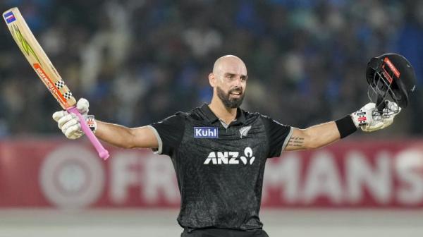 Will Young played a solid innings of 87 runs (seven fours) in 98 balls, which was fully supported by Mitchell’s excellent batting. Mitchell made effective use of the sweep shot to score his third century and eighth overall against India. He scored unbeaten 131 runs in 117 balls.