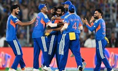 Co-hosts India hammered New Zealand by 96 runs in the final in Ahmedabad on Sunday to be the first team to retain the T20 world crown and first to win it three times.