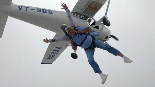 The trainer ties Union Minister Shekhawat with a belt and jumps on his body. Also, a video of Union Minister Shekhawat jumping with a parachute has also gone viral on social media. The video was taken by another skydiver who landed with a parachute from the same plane.