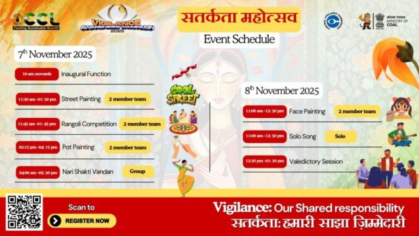The theme of the program has been kept as Vigilance: Our Shared Responsibility. Information about the outline of the program has been given in the press release issued by CCL on Wednesday. Under this, it has been told that the program will be inaugurated in the inaugural ceremony on November 7. After this, a two-member street painting, pot painting and rangoli competition will be organized for the participants. Along with this, Nari Shakti Vandana will also be organized in the group.