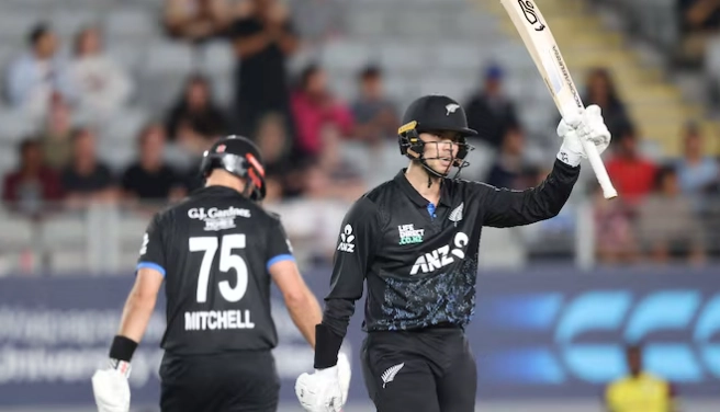 He blasted three sixes and a four in one over off Romario Shepherd and scored heavily against Jayden Seales, taking 23 runs in a single over. Daryl Mitchell joined in, hitting three sixes off Akeal Hosein as New Zealand amassed 82 runs in the final four overs. This late surge proved decisive, with the team crossing the 200-run mark and establishing a challenging target for West Indies.Openers Devon Conway and Tim Robinson provided a solid start, putting on 55 runs in seven overs. Both were dismissed in quick succession, but Rachin Ravindra and Chapman consolidated, taking the score to 81/2 by the 13th over.