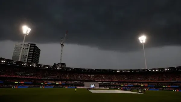 The ground staff covered the ground after the fifth ball of the fifth over because there was a possibility of lightning and the weather department had warned of rain. Now light rain has also started. The main part of the field has been completely covered and the match situation is still uncertain.