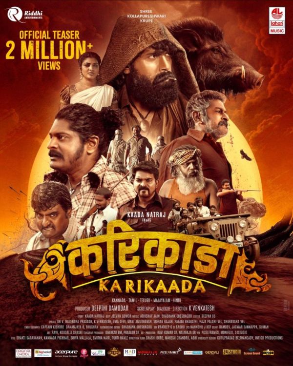 Produced under the banner of Riddhi Entertainments, “Karikada” Directed by producer Deepti Damodar, co-produced by Ravi Kumar S.R. and Natraj S.R., and executive producer Prakash S.R. and Diwakar B.M. Are. The script, dialogues and direction of the film. Venkatesh has done it. The music is purchased by Lahari Music. The team has announced that principal photography has been completed and now preparations are underway for the audio launch, trailer release and large theatrical distribution.