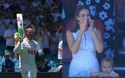 While walking back, Khawaja removed his helmet and began the long walk back to the pavilion as the SCG stood applauding. He waved his bat to every corner of the ground, blew a flying kiss, and knelt to kiss the turf. In the stands, his wife was visibly in tears. Joe Root was among the first to shake his hand and congratulate him for his contribution.